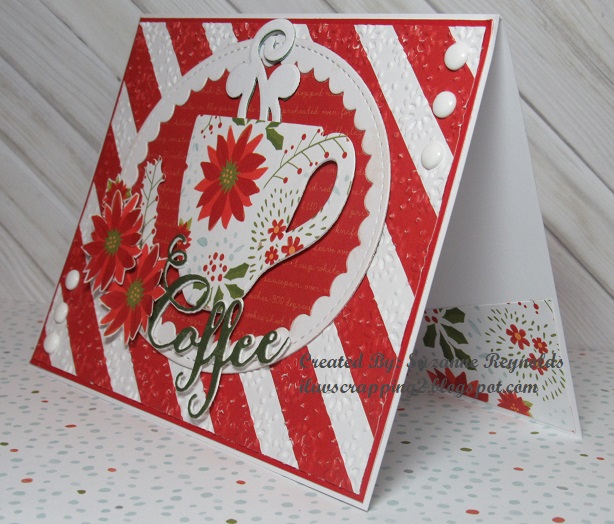 This is a neat card love your cup of hot coffee it will warm you up the poinsettias looks so gorgeous on it. Hugs Andrea